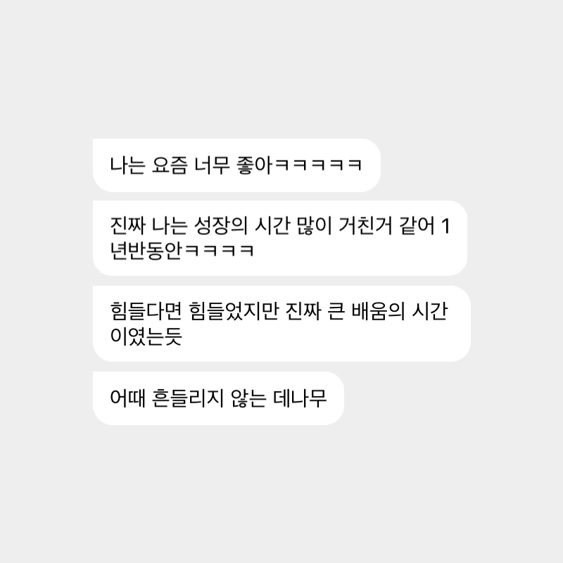 2022년 1월 9일 일요일도개걸윷잘지냈나??오후 07:48 도개걸윷나는 좀 낚시하러 돌아다녔었어오후 07:49 도개걸윷미안합니다 걱정시켜가지고ㅋㅋㅋㅋㅋ오후 07:49 도개걸윷나도 가기전이라니까 지인들이 다 보자고해가지고ㅋㅋㅋ오후 07:51 도개걸윷다 못볼거같은데오후 07:51 도개걸윷나 지금 너무 오랜만에 해서 타자기 켜놓고 멍때리고 있는거 실화냐오후 07:56 도개걸윷나는 요즘 너무 좋아ㅋㅋㅋㅋㅋ오후 07:57 도개걸윷진짜 나는 성장의 시간 많이 거진거 같어 1년반동안ㅋㅋㅋㅋ오후 07:58 도개걸윷힘들다면 힘들었지만 진짜 큰 배움의 시간이였는듯오후 07:58 도개걸윷어때 흔들리지 않는 데나무오후 07:59 도개걸윷이번에 눈도장찍고 왔음오후 07:59 도개걸윷박사님이랑 오랜만에 만나..